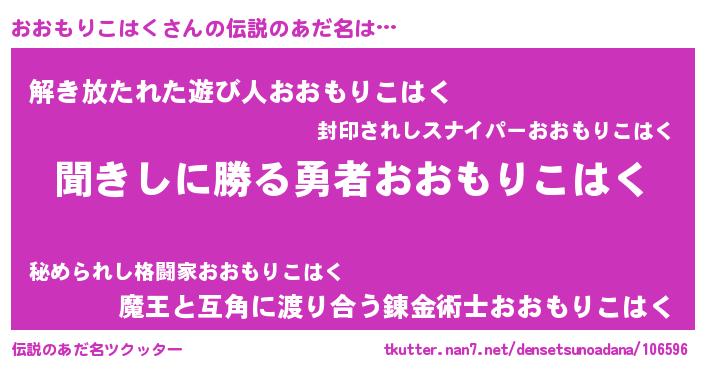 | 男性向けラノベタイトル風あだ名 | 『オオモリコハクスレイヤー』 |
