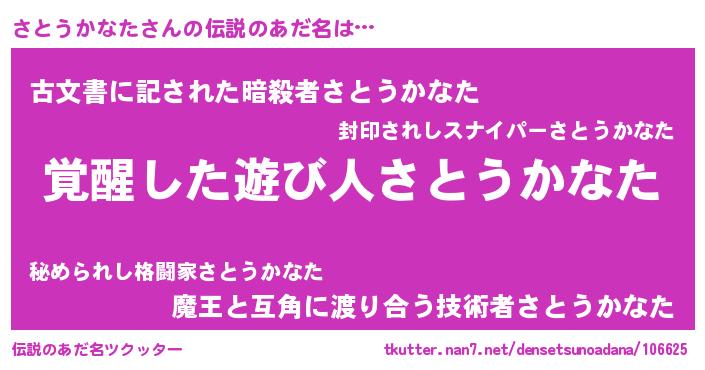 | 意味不明あだ名 | 『とにかく怪しいさとうかなた』 |