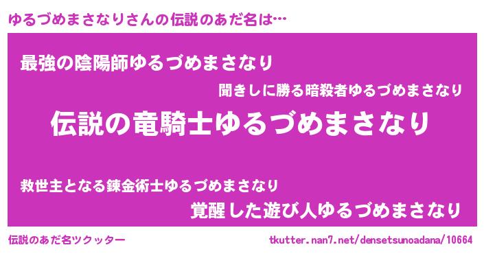 | ヒーロー風カッコイイあだ名 | 『スーパーユルヅメマサナリ』 |