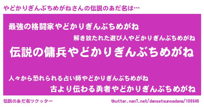 | ヒーロー風カッコイイあだ名 | 『スーパーヤドカリギンブチメガネ』 |