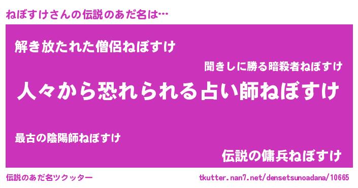 | ヒーロー風カッコイイあだ名 | 『超時空戦士ネボスケ』『暗黒騎士ネボ』 |