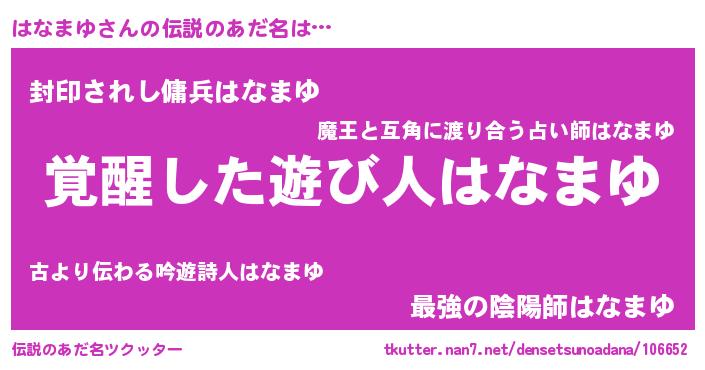 | ヒーロー風カッコイイあだ名 | 『仮面ハナダー』『超時空戦士ハナマユ』 |