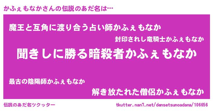 | 意味不明あだ名 | 『永久保存かふぇもなか』 |