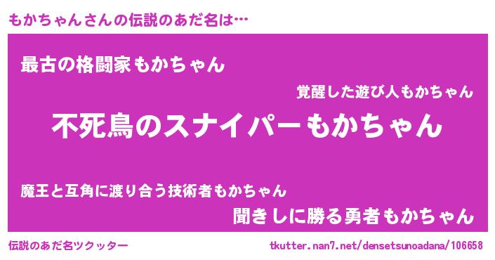 | 胡散臭い通販商品みたいなあだ名 | 『モテモテ間違いなし霊験あらたかなお札…その名も「もかちゃん」』 |