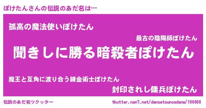 | 男性向けラノベタイトル風あだ名 | 『ぽけたんという概念が存在しない退屈な世界 』 |