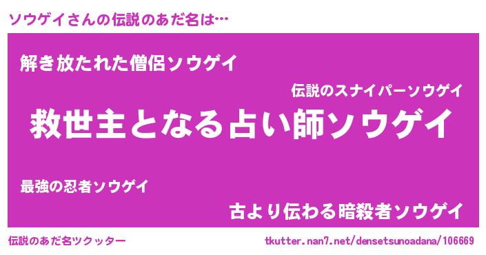 | 女子向けラノベタイトル風あだ名 | 『死神ソウゲイの再婚』 |