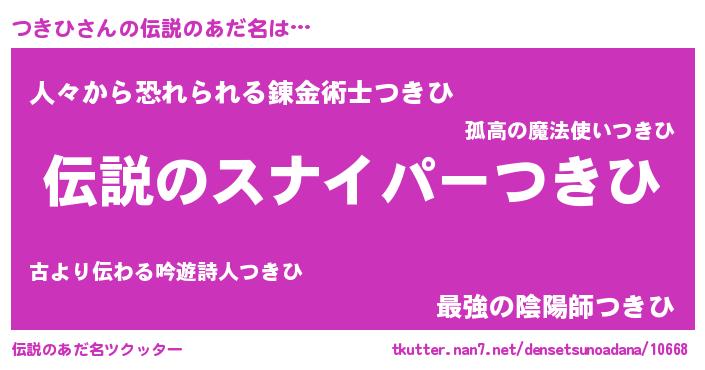 | ヒーロー風カッコイイあだ名 | 『スーパーツキヒ』『友情の使者つきひ』 |