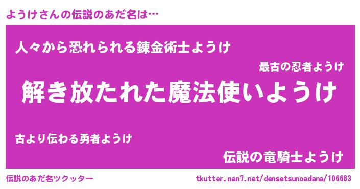 | ヒーロー風カッコイイあだ名 | 『サイバー戦士ヨウケ』『仮面ヨウダー』 |