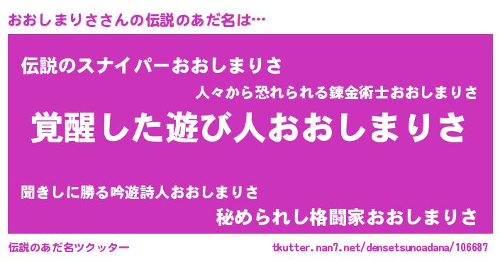 | 欧米人風あだ名 | 『ケンブリッジおおしまりさ』 |