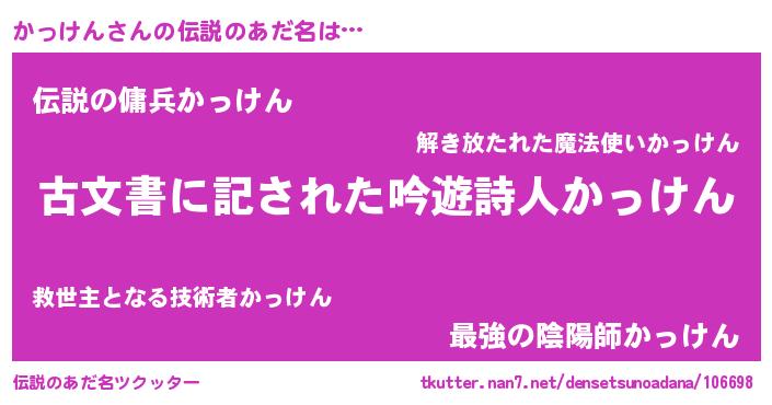 | ヒーロー風カッコイイあだ名 | 『ネオカッケン』『スーパーカッケン』 |