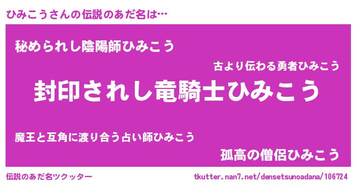 | 女子向けラノベタイトル風あだ名 | 『闇のひみこう』 |