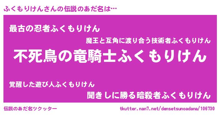 | 肩書あだ名 | 『ふくもりけん社長』『ふくもりけん大尉』 |