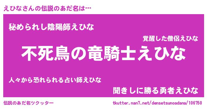 | 男性向けラノベタイトル風あだ名 | 『この素晴らしい世界にえひなを!』 |