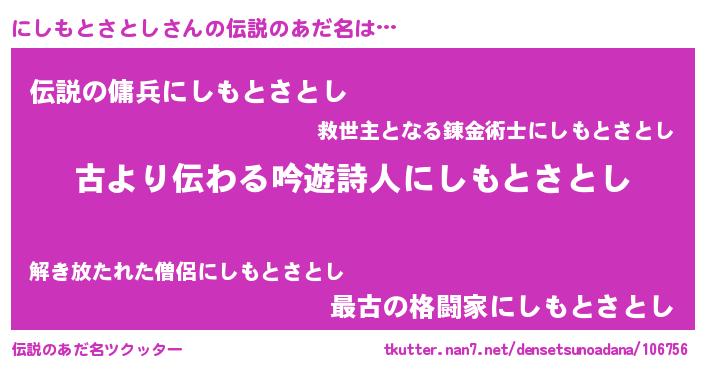 | 男性向けラノベタイトル風あだ名 | 『この素晴らしい世界ににしもとさとしを!』 |