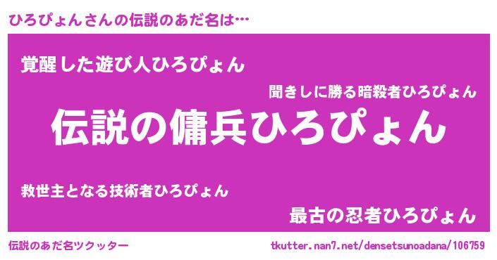 | 男性向けラノベタイトル風あだ名 | 『ヒロピョンスレイヤー』 |