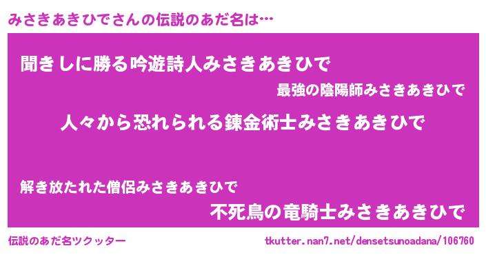 | ヘコむあだ名 | 『みさきあきひで(遠い目)』『みさふぇ~』 |