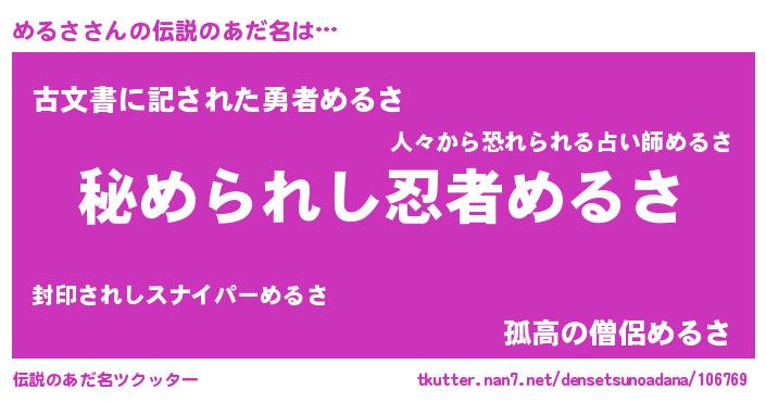 | 意味不明あだ名 | 『めるさフォーエバー』『永久保存めるさ』 |