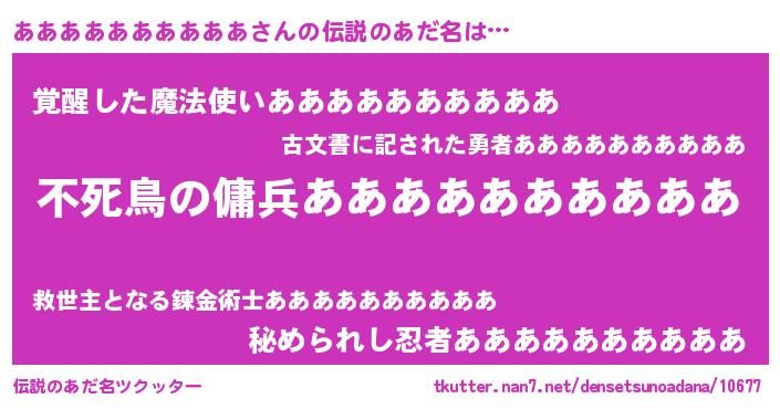 | ヒーロー風カッコイイあだ名 | 『仮面アアダー』『天弓騎士アア』 |