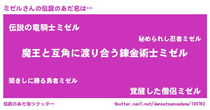 | 男性向けラノベタイトル風あだ名 | 『おまえをオタクにしてやるから、俺をミゼルにしてくれ! 』 |