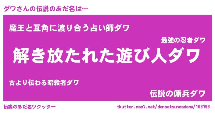 | ヒーロー風カッコイイあだ名 | 『銀牙騎士ダワ』『慈愛の使者ダワ』 |