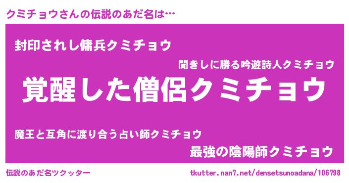 | ヒーロー風カッコイイあだ名 | 『炎刃騎士クミ』『スーパークミチョウ』 |
