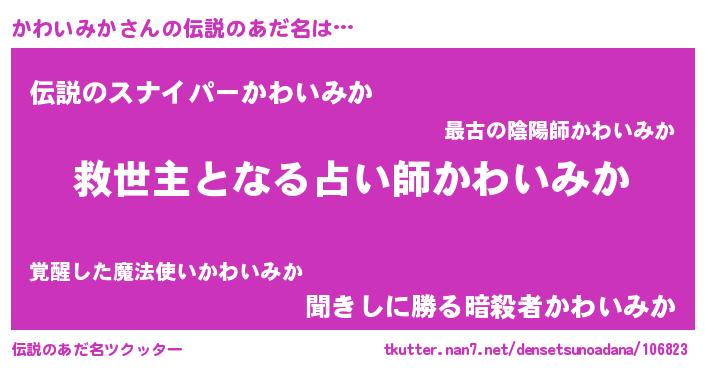 | 意味不明あだ名 | 『住所不定無職かわいみか(47歳)』 |