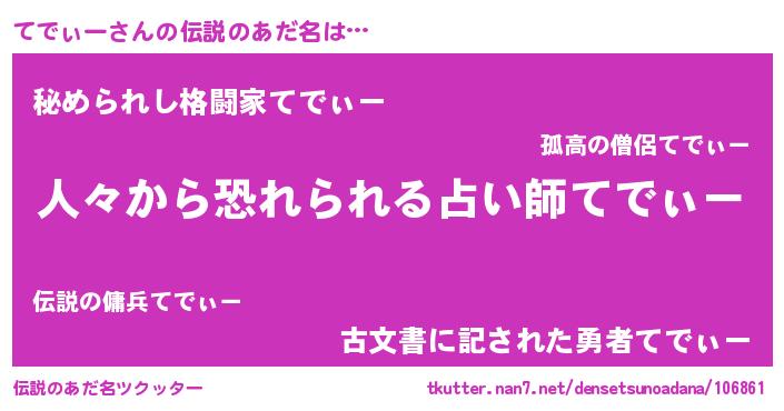 | 意味不明あだ名 | 『住所不定無職てでぃー(68歳)』 |