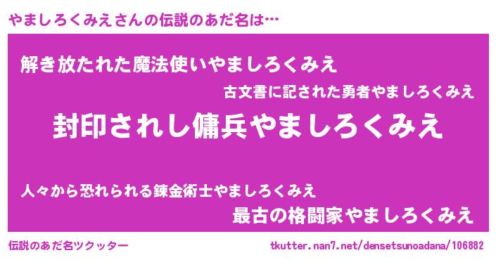 | 胡散臭い通販商品みたいなあだ名 | 『億万長者になれる水晶球…その名も「やましろくみえ」』 |