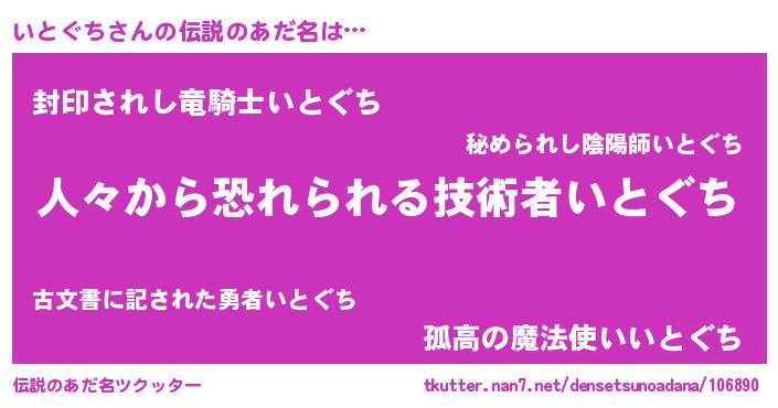 | ヒーロー風カッコイイあだ名 | 『正義の使者いとぐち』『仮面イトダー』 |