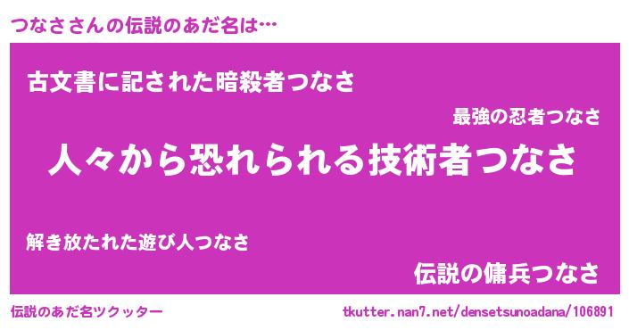 | ヘコむあだ名 | 『つなさ(小並感)』『つなにー』 |