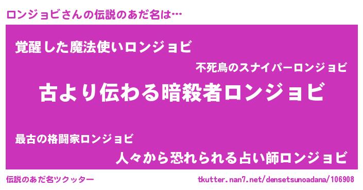 | 男性向けラノベタイトル風あだ名 | 『ロンジョビに滅ぼされるだけの簡単なお仕事です』 |