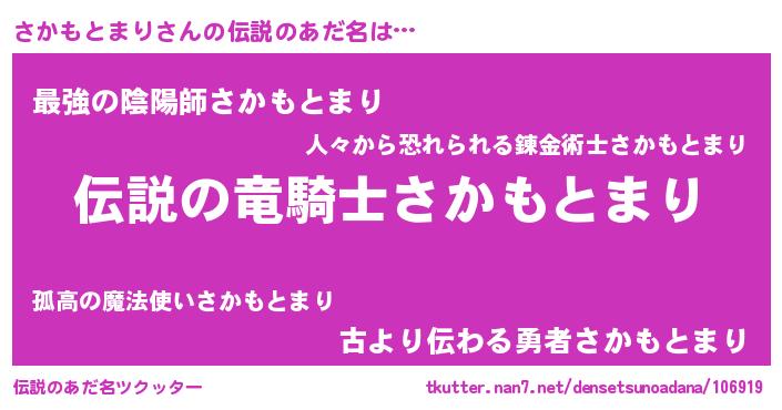 | ヒーロー風カッコイイあだ名 | 『仮面サカダー』『スーパーサカモトマリ』 |