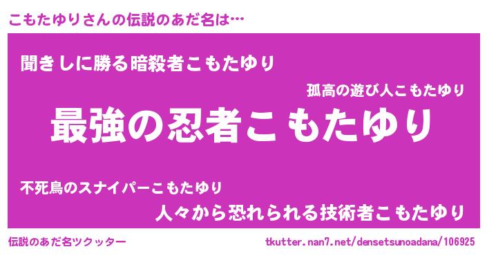 | ヒーロー風カッコイイあだ名 | 『仮面コモダー』『ネオコモタユリ』 |