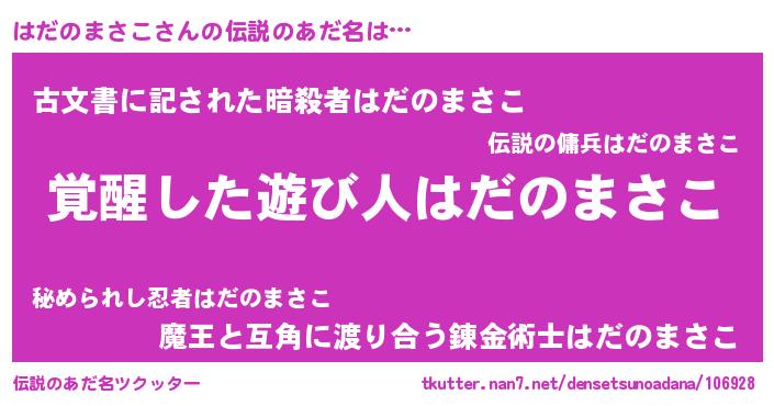 | ヒーロー風カッコイイあだ名 | 『仮面ハダダー』『暗黒騎士ハダ』 |