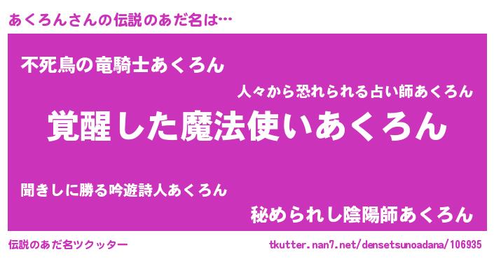 | ヒーロー風カッコイイあだ名 | 『炎刃騎士アク』『仮面アクダー』 |