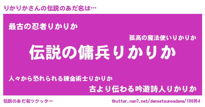 | ヒーロー風カッコイイあだ名 | 『超時空戦士リカリカ』『仮面リカダー』 |