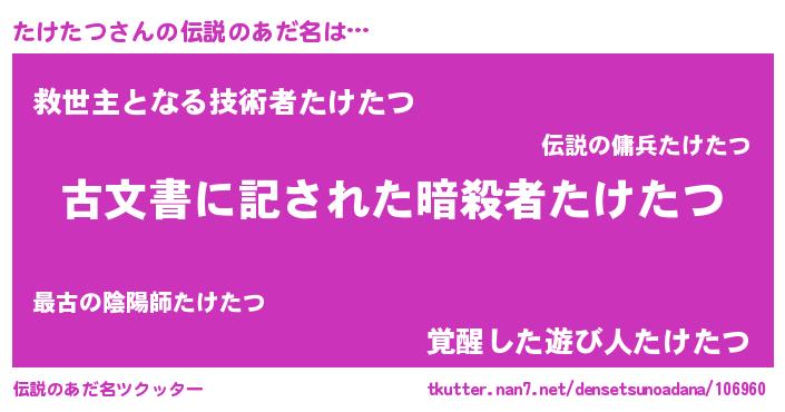 | 胡散臭い通販商品みたいなあだ名 | 『前代未聞の健康食品…その名も「たけたつ」』 |