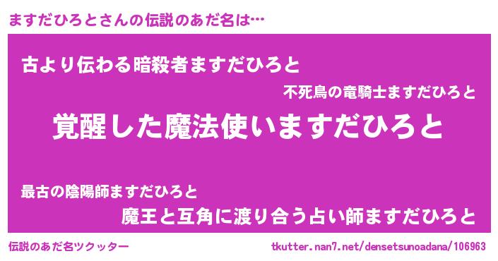 | ヘコむあだ名 | 『ます太郎』『ますだひろと(苦笑)』 |