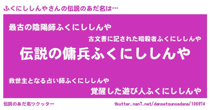 | 意味不明あだ名 | 『自称ふくにししんや』 |