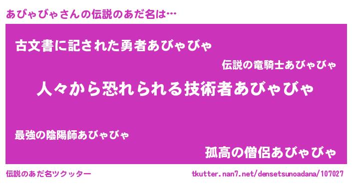 | 意味不明あだ名 | 『自称あびゃびゃ』『永久保存あびゃびゃ』 |