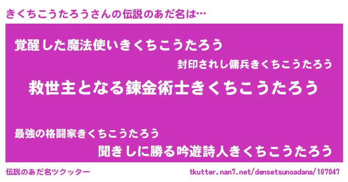| 意味不明あだ名 | 『自称きくちこうたろう』 |