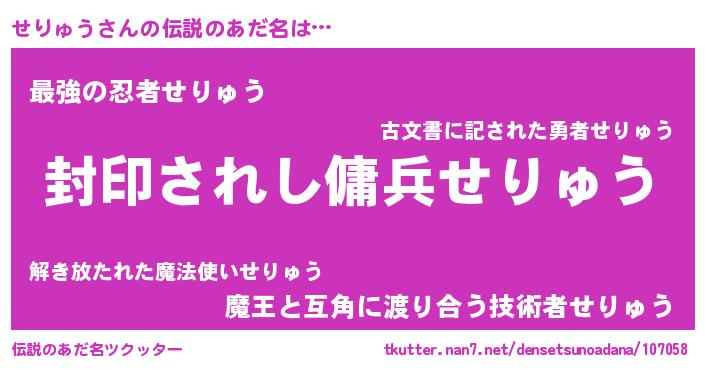 | ヒーロー風カッコイイあだ名 | 『スーパーセリュウ』『ネオセリュウ』 |
