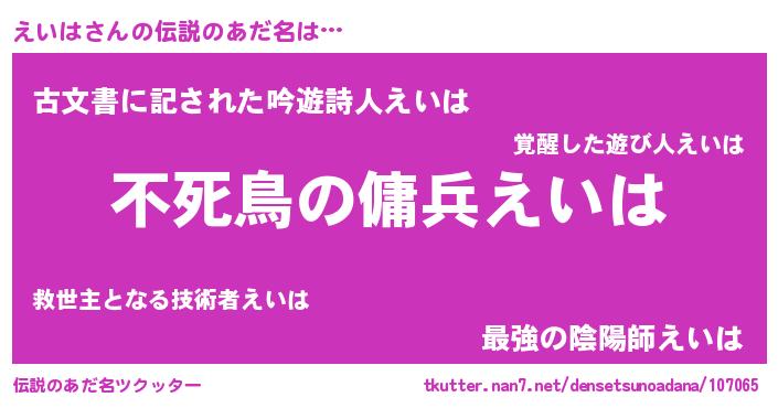 | 男性向けラノベタイトル風あだ名 | 『えいはの憂鬱』 |