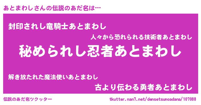| ファンタジー風あだ名 | 『エターナルアトマワシー』『ゼアトトゥ』 |