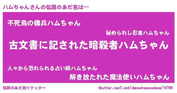 | ヒーロー風カッコイイあだ名 | 『ネオハムチャン』『スーパーハムチャン』 |