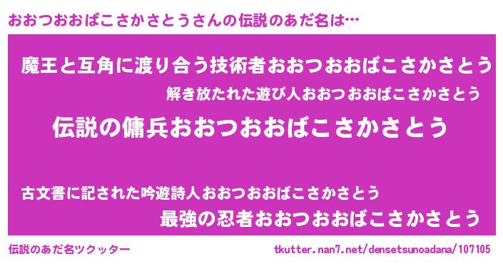 | 胡散臭い通販商品みたいなあだ名 | 『必ず成功する水晶球…その名も「おおつおおばこさかさとう」』 |