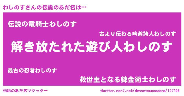 | 欧米人風あだ名 | 『ウサインわしのす』『マイケルわしのす』 |