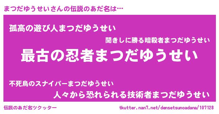 | 男性向けラノベタイトル風あだ名 | 『やはりまつだゆうせいの青春ラブコメはまちがっている 』 |