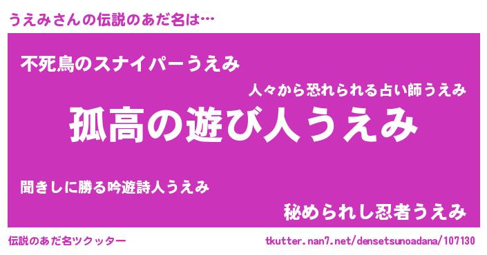 | 意味不明あだ名 | 『とにかく怪しいうえみ』 |