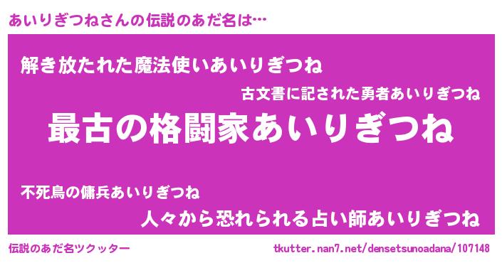 | 胡散臭い通販商品みたいなあだ名 | 『テレビで話題の高麗人参…その名も「あいりぎつね」』 |